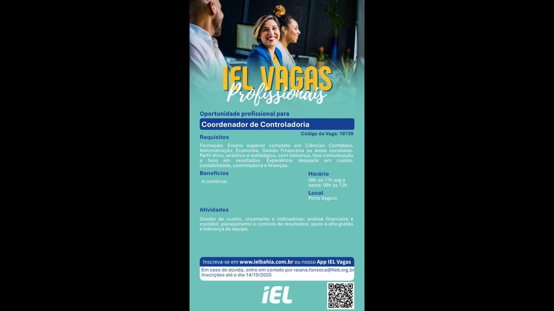 - Diferencial: Pós-graduação ou MBA em Controladoria, Finanças ou áreas correlatas.