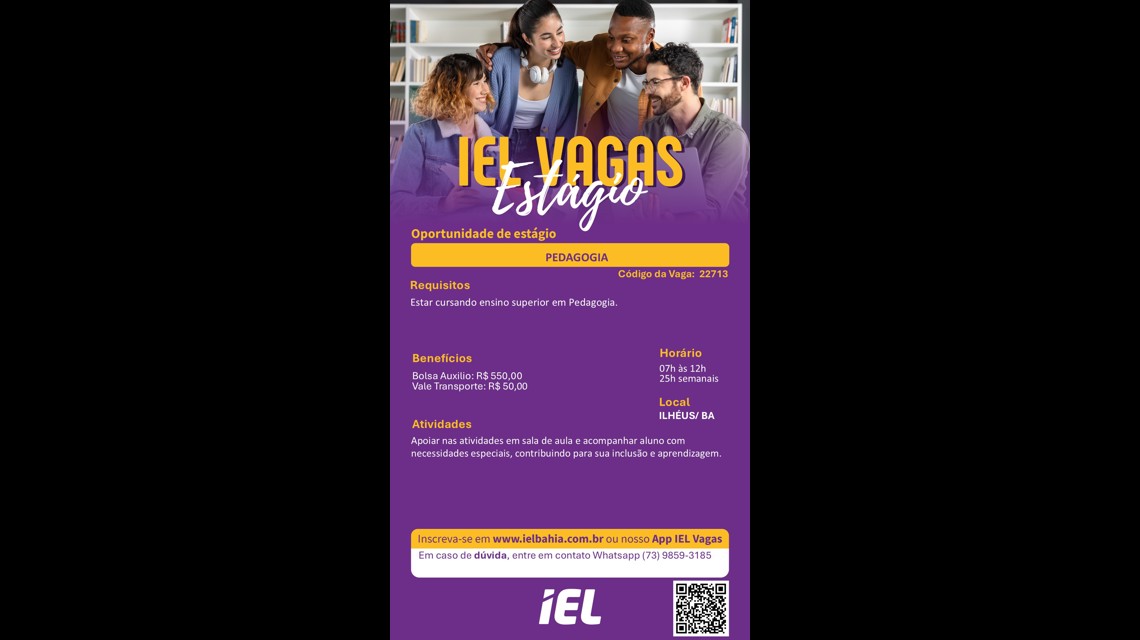 Requisitos: Estar cursando ensino superior em Pedagogia.