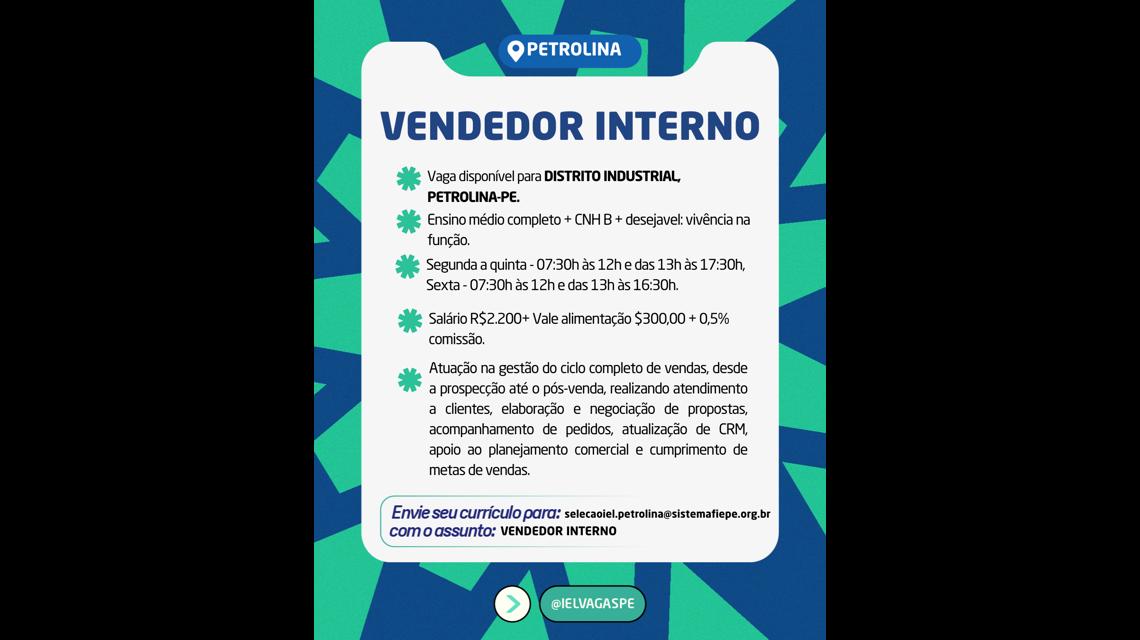 Desempenhar atividades de Vendedor Interno: Prospecção ativa de clientes; negociação comercial; follow-up de clientes e realizar rotinas administrativas de vendas (CRM, planilhas, relatórios).
