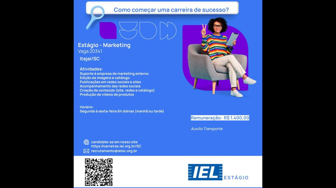 O IEL/SC conecta os melhores profissionais às empresas. Em parceria com a empresa Importadora , estamos selecionando um estagiário(a) para Estágio em Marketing.